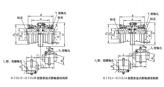 型號 | 公稱扭矩Tn/N.m | 軸孔直徑 | 軸孔長度 | D | D1 | A | C | C1 | C2 | 重量Kg | |
